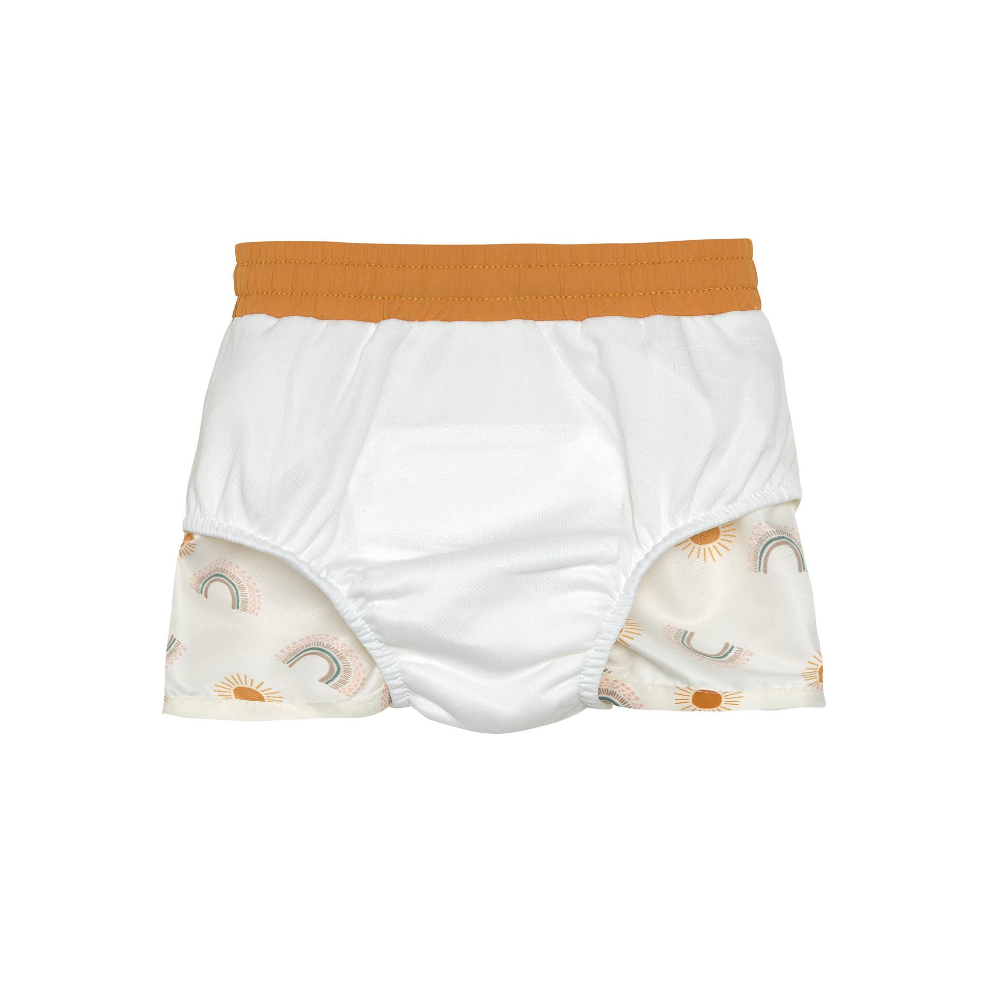 Die kurze Badehose in Weiß bietet dank der integrierten Schwimmwindel, des breiten Bundes und der nahtlosen Verarbeitung im Inneren ein angenehmes Tragegefühl und Badespaß. Hergestellt aus recyceltem Polyester.