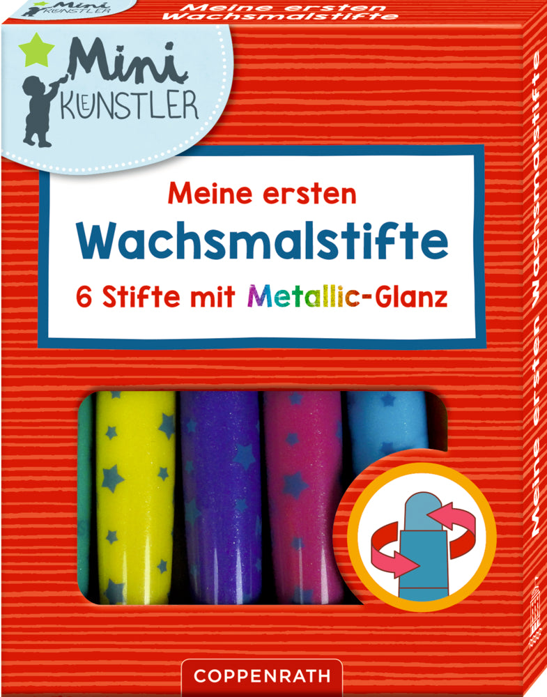 Sechs farbige Stifte mit Metallic-Glanz. Die Stifte sind ab 3 Jahre geeignet.
