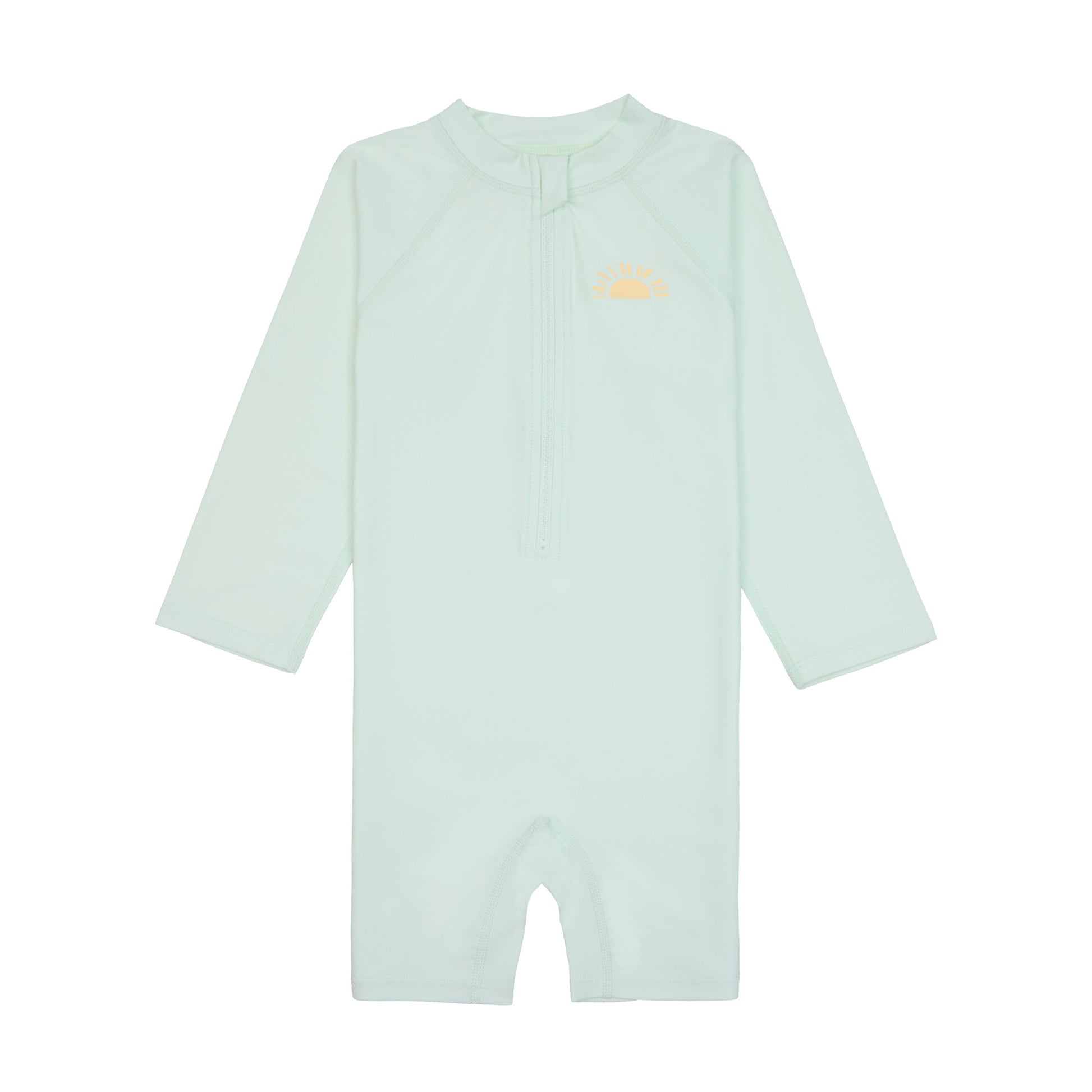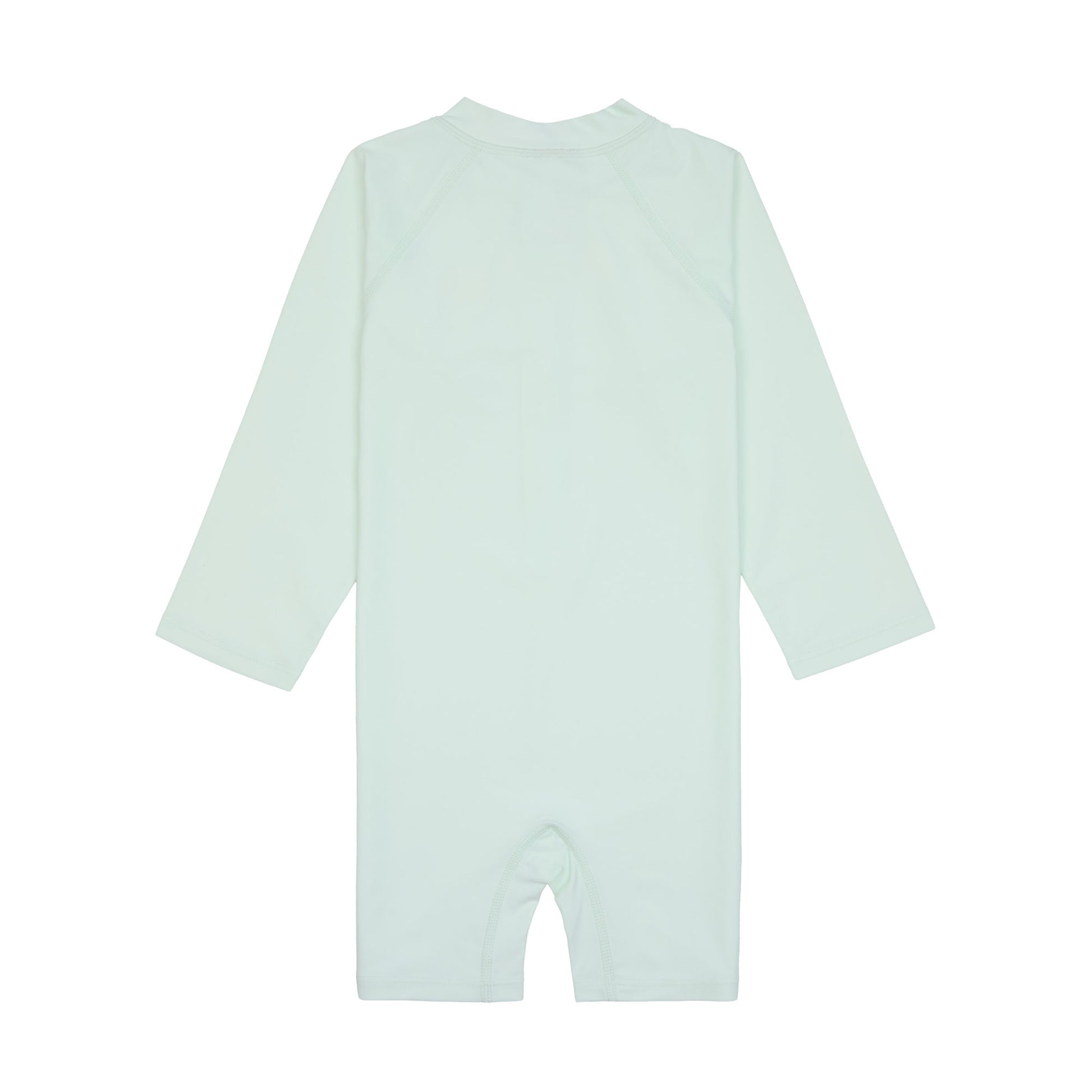 er langärmelige Kinder-Schwimmanzug in Mintgrün bietet mit UV-Schutz 60 optimalen Sonnenschutz. Ausgestattet mit Kinnschutz, flachen Nähten und einem durchgehenden Reißverschluss sorgt das atmungsaktive, schnelltrocknende Material für hohen Tragekomfort und maximale Bewegungsfreiheit – ideal für kleine Wasserratten von 3 Monaten bis 3 Jahren.